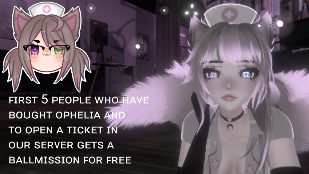 The first five people to purchase Ophelia and make a ticket in our Discord server asking for a ball art commision gets one drawn of whichever character they want for free. (1 remaining)